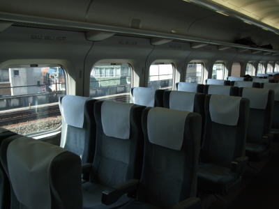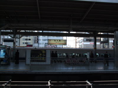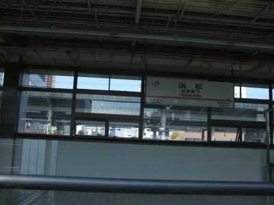 12時05分、最初の停車駅、浜松(はままつ)駅に到着しました。 ここで、新幹線のぞみ号に1本抜かれました。 自由席車両へは、大量に乗り込んでいきましたが、指定席車両には、数人しか乗り込んできませんでした。 |