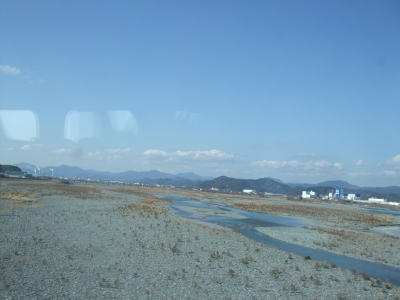 途中、大井川を渡ります。 天気もよく、川の流れも穏やかです。 |