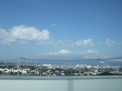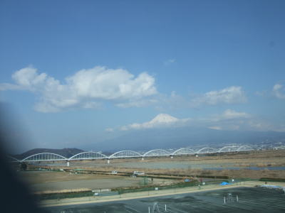 静岡駅を出て、しばらくすると富士山が見えてくるようになります。 富士川橋梁からの富士山の景色が一番きれいに見えました。 |