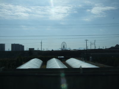 新幹線は、順調に進み、三河湾が見えてきました。 そして、ラグーナ蒲郡の観覧車が大きく見えていました。 |