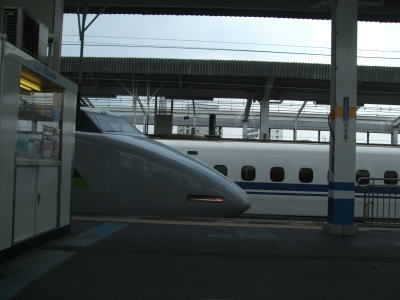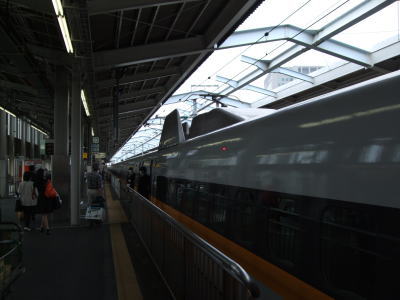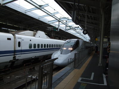 隣のホームには、100系新幹線のこだま号が停まっていました。 そして、さらに奥には、N700系の新幹線が停まっていました。 |