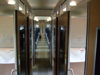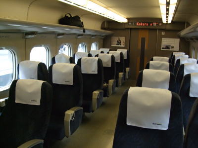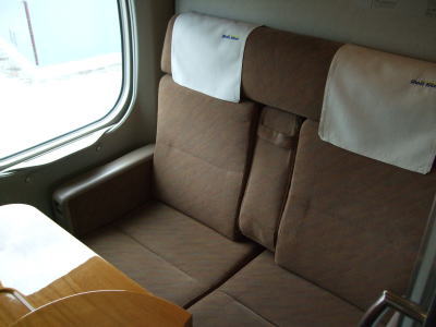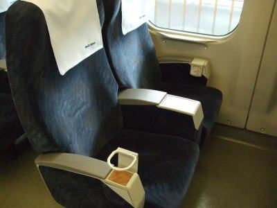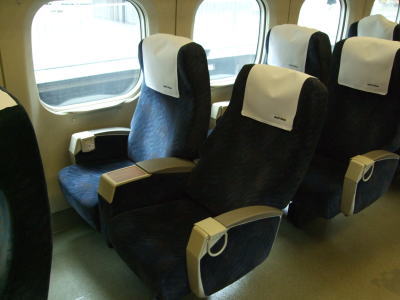 乗車したのは、普通車の指定席です。 レールスターの特徴は、指定席です。 2−2列シートとゆったりとした座席になっています。 |