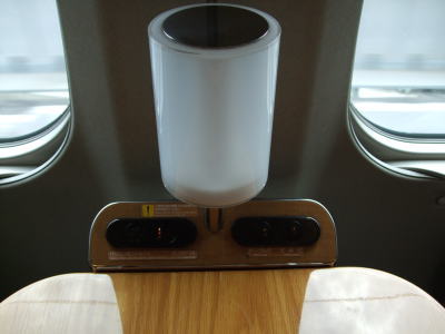 座席のひじ掛けには、ドリンクホルダーもついていました。