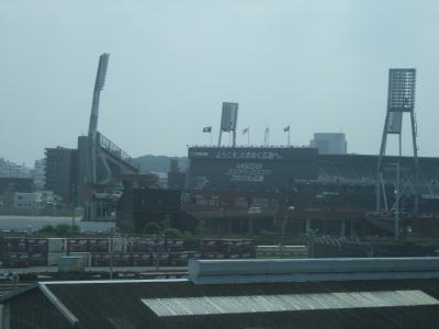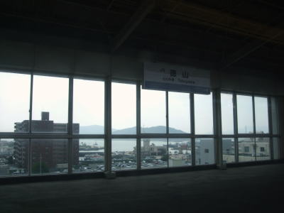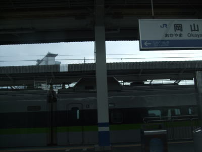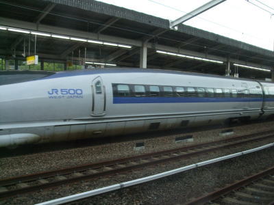 次は、新幹線の車両基地が見えてきました。 8両と短編成となった500系新幹線も見えました。 |