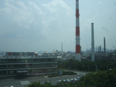速度が落ちて、徳山の工場地帯が見えてきました。