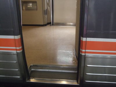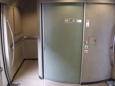 そして、こちらは、車いす専用の座席です。 ここだけは、一段低く、段差なく座席につけます。