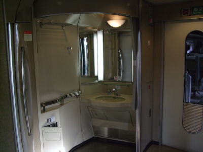 入ると、デッキには大きな洗面台がありました。 バリアフリー用のため広くなっています。