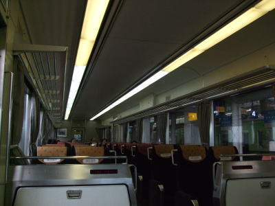 車内は、転換クロスシートが並び、そして釣り革が一つもないのが特徴です。