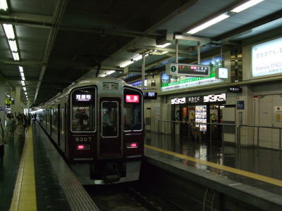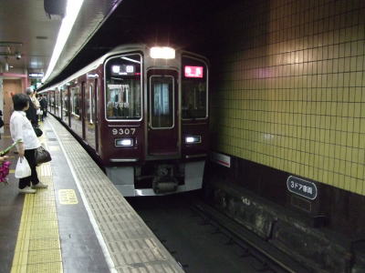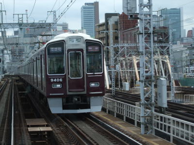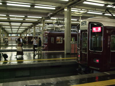 阪急の神戸線、宝塚線、京都線と3路線が並びます。 |
