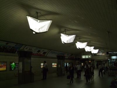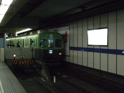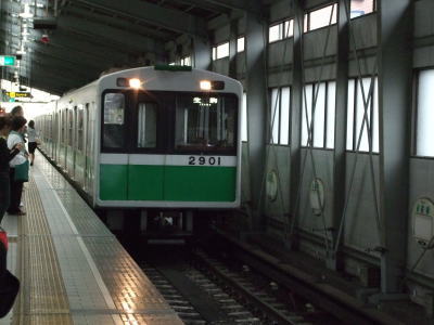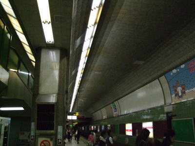 このまま、大阪市営地下鉄御堂筋線に乗り換えます。 地下鉄の駅を見ると、なんとなくレトロな雰囲気があります。 |
