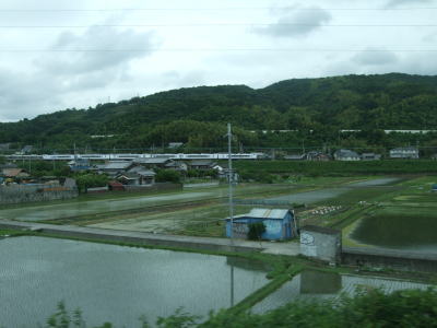 反対方の車窓は、関空特急はるか号と快速列車が並走していました。