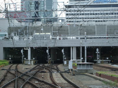 終点の梅田(うめだ)駅に到着しました。 梅田駅といっても、地図で見ておわかりの通り、JR大阪駅と同じ位置です。 |
