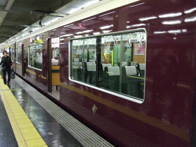 烏丸(からすま)駅からスタートです。 梅田行きの特急に乗車します。 |