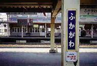 滝川に着いてから、特急「ライラック」に乗って、深川へ来ました。 ここから留萌本線に乗ります。留萌本線も大きく変貌した路線ですね。 列車はキハ54系でした。しかも転換クロスシートの車両でした。 |