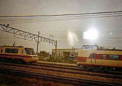 ちょうど、春日井にある、神領車両区を通過すると、381系のパノラマグリーン車編成がいました。 筆者は、小さいころに、381系に乗ったことがありますが、あまり記憶がありません。確か、御嶽山へ行くときに、木曽福島まで乗った記憶があります。そのときは、「しなの」白馬行きだったことを思い出します。 |
